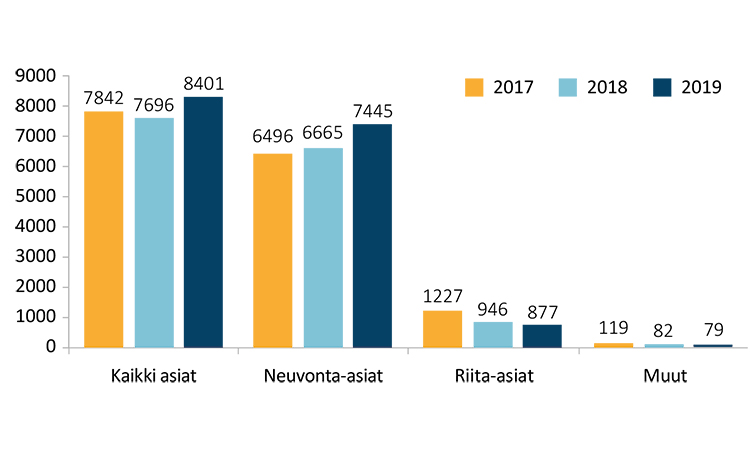 Vuonna 2019 erilaisia riitautumassa olleita tilanteita saatiin purettua neuvonnan keinoin yhteensä yli 300 kappaletta.