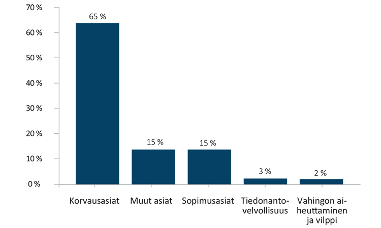 - vastuuvakuutuksen osalta tuottamusarviointiin ja rajoitusehtojen tulkintaan liittyvät kysymykset